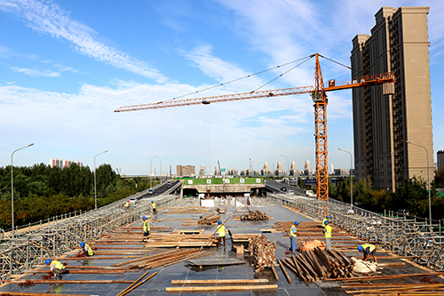 橋梁頂升結(jié)束后,將對(duì)103#~105#墩采用斷柱頂升接高墩柱的方法進(jìn)行施工,墩柱頂升完成后,再對(duì)全橋進(jìn)行墩柱連接和橋臺(tái)改造,最后施工支座墊石及支座安裝,安裝支座后進(jìn)行落梁工作。項(xiàng)目計(jì)劃9月底完成高架段主體結(jié)構(gòu),后續(xù)將進(jìn)行防撞墻、聲屏障、橋面、路燈、交通設(shè)施等施工。確保2019年1月1日實(shí)現(xiàn)北園大街快速路西延高架段通車,地面快速路將于2019年6月底通車。