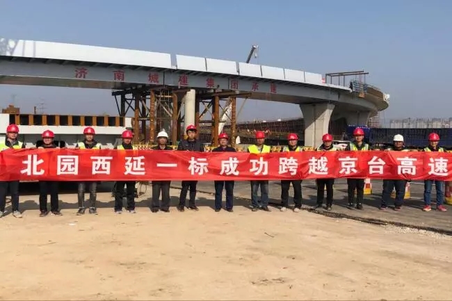 12月16日,北園大街快速路西延工程試通車,濟南第一條連通東西繞城高速橫貫城區的快速走廊建成。濟南城市建設集團所屬濟南城建集團有限公司(以下簡稱城建集團)、濟南黃河路橋建設集團有限公司(以下簡稱黃河路橋)分標段承建了北園大街快速路西延工程,在相關部門悉心指導和各參建單位大力支持下,經過9個月的攻堅奮戰,圓滿完成建設任務,比預定工期提前半年實現通車。