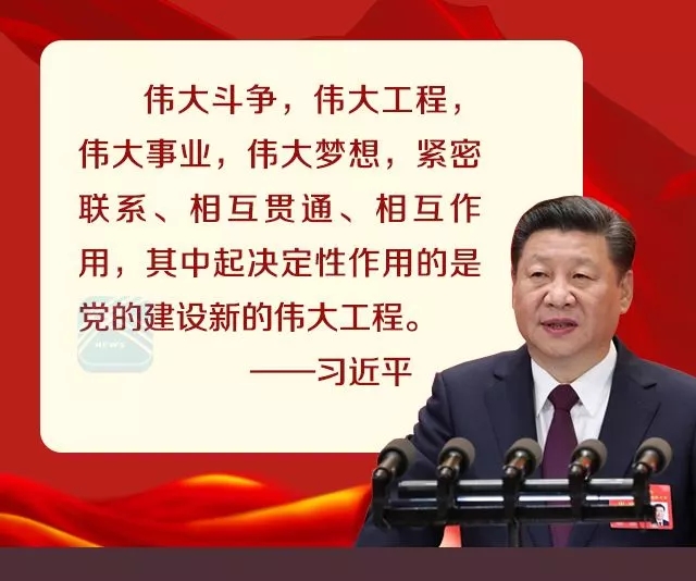 偉大斗爭,偉大工程,偉大事業,偉大夢想,緊密聯系、相互貫通、相互作用,其中起決定性作用的是黨的建設新的偉大工程。