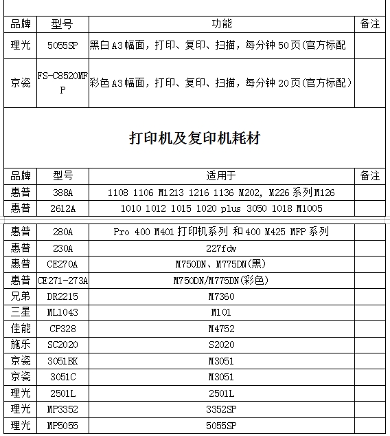 現對集團打印機、耗材及周邊設備采購選取供應商進行詢價,有關事項通知如下,歡迎各單位參加報價。