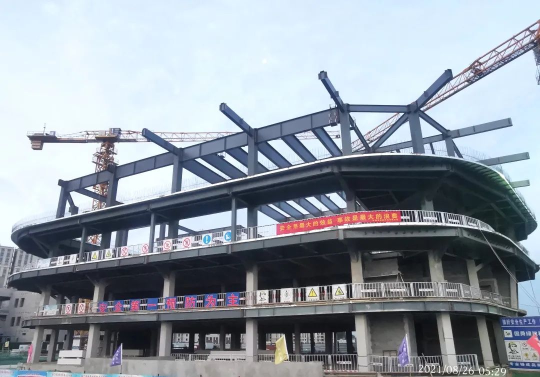 在主體結(jié)構(gòu)施工中,采用鋼構(gòu)框架安裝,施工采用BIM排布鋼構(gòu)安裝順序,鋼構(gòu)組件抵達(dá)施工現(xiàn)場后施工人員按照編號快速有效拼接。樓板采用樓承板安裝,在免除支模板施工同時(shí)也提高了安全性加快了施工進(jìn)度,實(shí)現(xiàn)了安全經(jīng)濟(jì)環(huán)保的綜合效益。