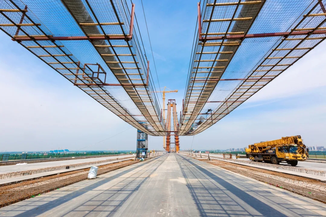 世界橋面最寬的特大鋼箱梁橋。項目按照雙向8車道一級公路標準建設,跨黃段橋梁范圍為公軌合建的橋梁形式,中間預留城市軌道交通空間,同時兩側設置跨河慢行通道,鋼箱梁全寬61.7米,是世界橋面最寬的特大鋼箱梁橋。