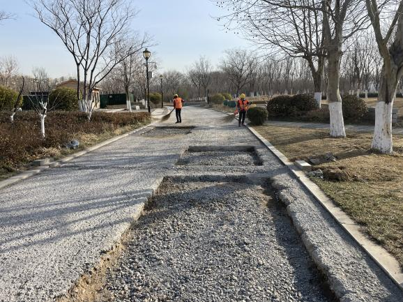 針對市民反映的補修華山湖北岸部分道路的訴求,集團高度重視,工程二部相關(guān)工作人員立即到現(xiàn)場實地勘察,組織編制整修方案,確定將上部松散面層銑刨后,更換為瀝青面層,并于2月28日進場實施。科學組織,加強調(diào)度,在保護公園環(huán)境及周邊既有設(shè)施不遭破壞的基礎(chǔ)上,于3月25日施工完成,比預(yù)計時間提前一周。