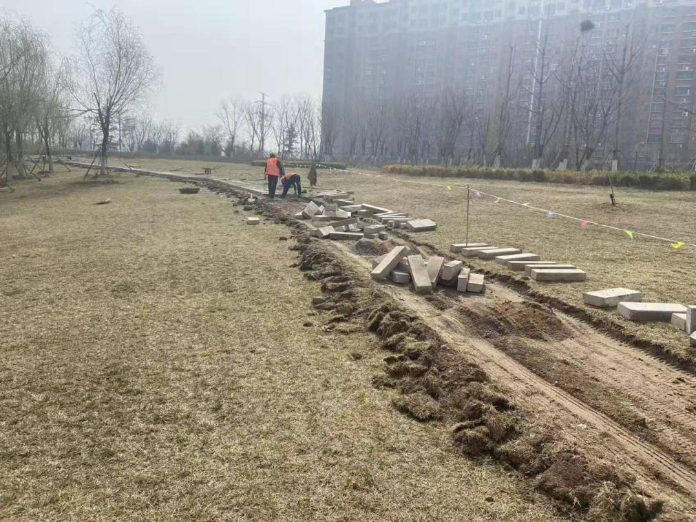 為進一步提升市民游園體驗,集團工程二部在華山濕地公園內(nèi)增設(shè)汀步道路,連通園區(qū)與光華大道。此次施工從節(jié)約成本和滿足功能需求角度出發(fā),使用片區(qū)原有石材,在公園東南區(qū)域鋪設(shè)汀步石640米,保證了公園綠地的完整和美觀,兼顧了市民通行游玩的便利。