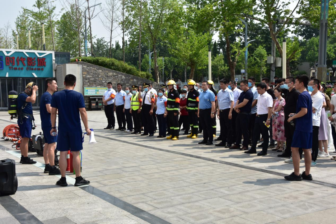 消防演練模擬城發廣場出現火情,現場迅速啟動應急預案,指揮部組織調度應急搶險組、安全保衛組、人員疏散組、醫療救護組分頭行動,完成現場滅火、人員撤離、物資轉移、傷員救治等工作。