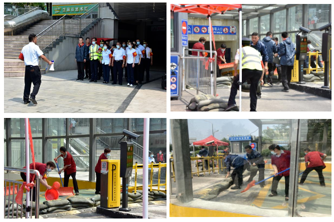 防汛演練模擬收到氣象部門發布暴雨藍色預警及以上天氣,防汛總指揮宣布啟動防汛應急預案,針對暴雨造成物業項目大面積積水,車庫倒灌、用電安全等險情,防汛指揮部調度各應急小組,及時組織人員撤離、物資轉移、應急排水、醫療救護等搶險工作。