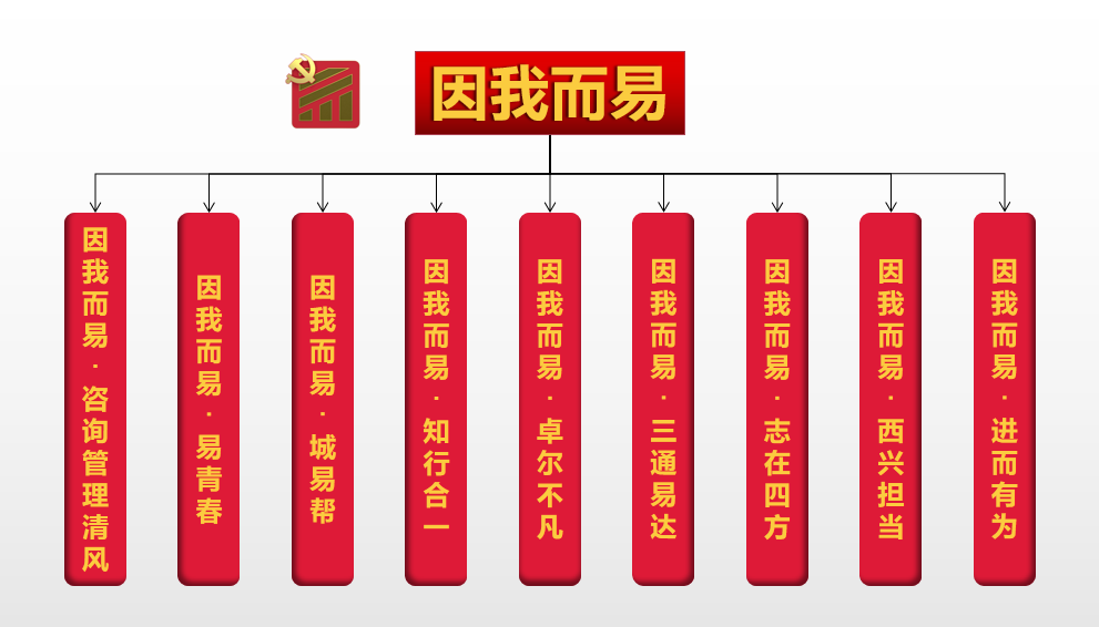 近年來,易方達公司按照建設集團黨委“1+N+n”品牌創建總體布局,把黨建品牌與企業文化,項目管理、監理、全過程工程咨詢主業,行業數字化轉型等深度融合,形成“因我而易”黨建品牌為“1”,以點帶面,充分發揮自身優勢,集中力量,挖掘資源,先后培育出“因我而易·咨詢管理清風”廉潔文化品牌,“因我而易·易青春”團委品牌,“因我而易·城易幫”“因我而易·志在四方”等支部品牌,形成亮點紛呈、百花齊放的“1+9”的黨建品牌矩陣。