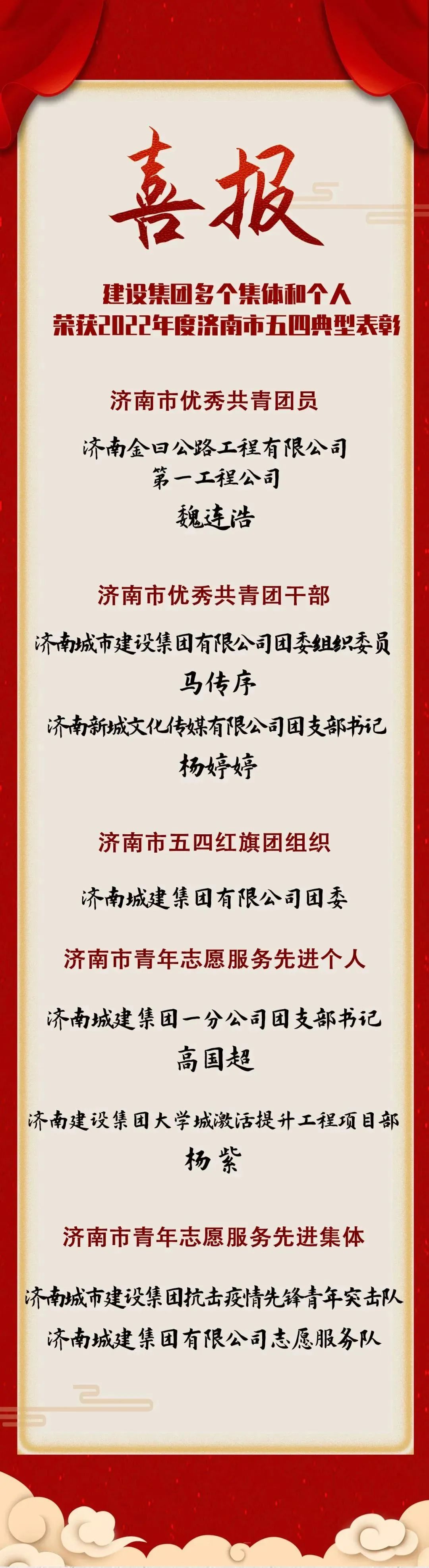 【喜報】建設集團多個集體和個人榮獲2022年度濟南市五四典型表彰