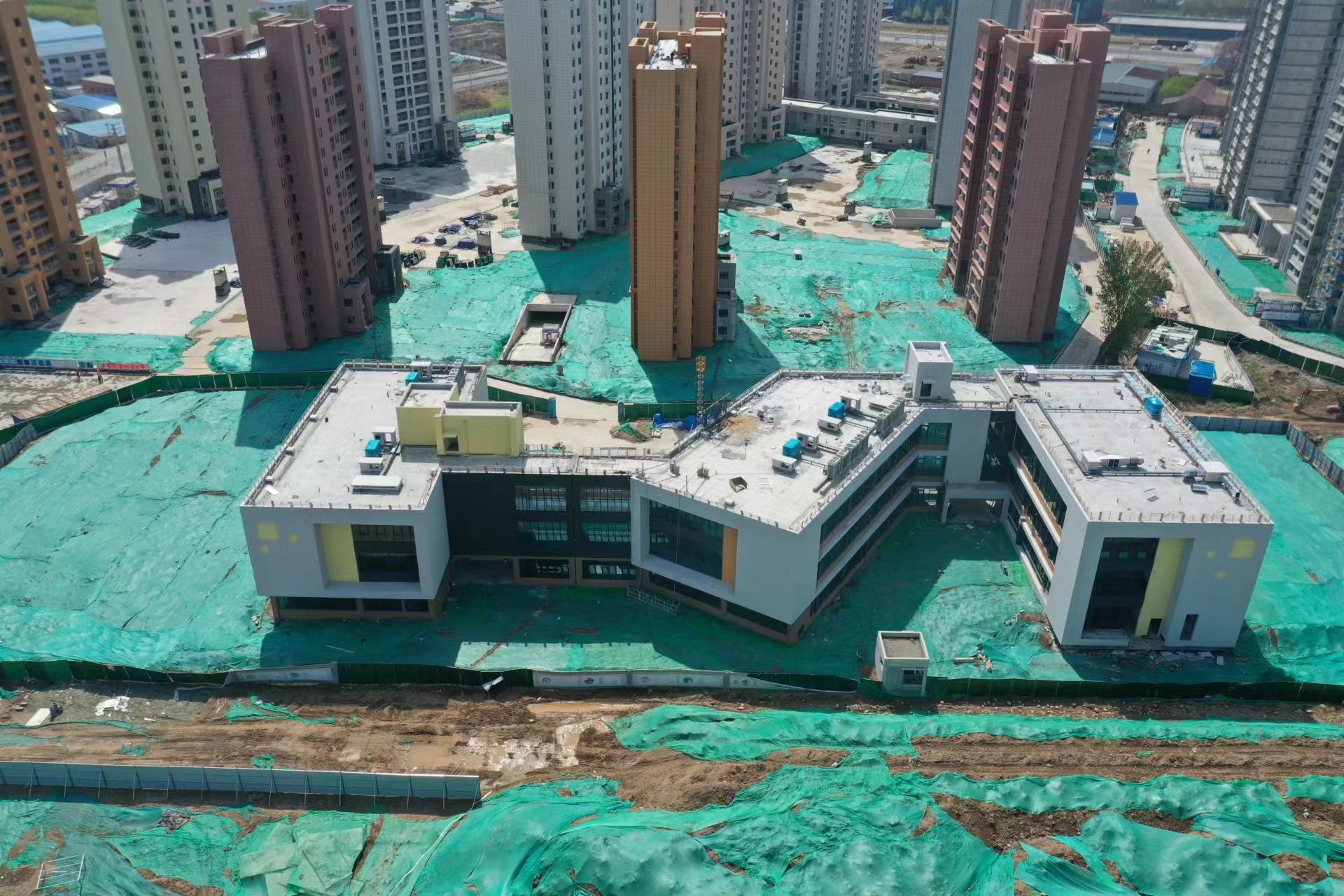 項目周邊存在眾多建成小區,且該區域內現有匯苑小學和匯誠小學已于2017年開始招生,就近沒有其他中學可以接納,本初中項目的建設能進一步完善市中區教育基礎設施建設,不僅提高當地教育水平發展,而且能解決市中區小學對口初中的就學需求,因此項目的建設迫在眉睫。為了保障項目按期交付使用,兩個項目科學組織、精心謀劃根據單體工程同步組織施工,分區域分棟號,24小時輪班制加快施工進度。目前初中、幼兒園項目主體結構完成80%,正按照計劃節點時間全力推進項目建設。