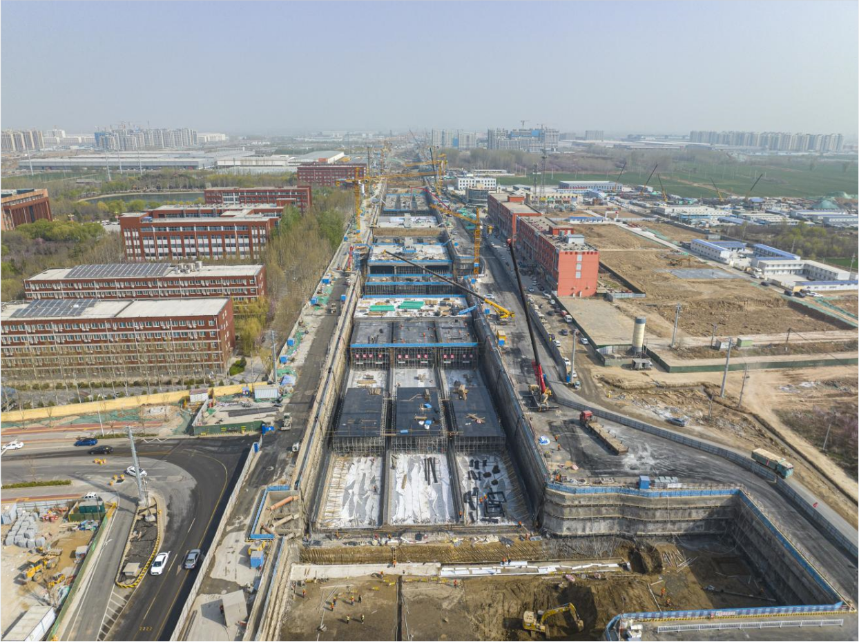 目前,建設集團正積極推進黃河大道青銀高速以北段項目建設,主體結構降水井完成率83%,冠梁完成率90%,地道土方開挖外運完成率84%,地道錨索完成率86%,地道坡面噴護完成率75%,止水帷幕完成率92%,主體澆筑完成率52%,底板防水卷材完成率34%,完成總工程量的39%。