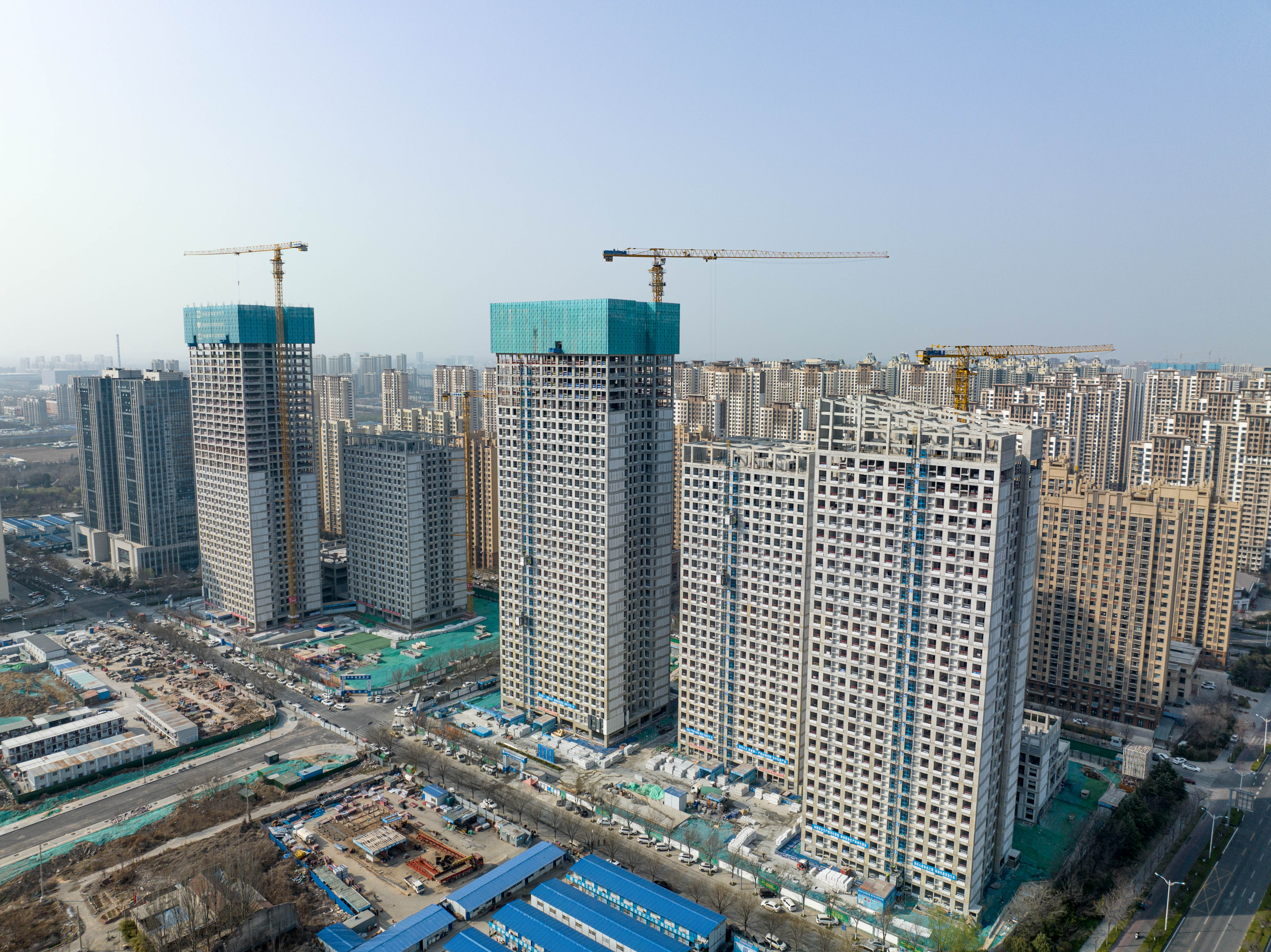除了安置房項目建設,在臘山河西側3#、4#地塊租賃公寓建設現場,主體結構施工全部完成,目前正進行二次結構施工,項目建成后將提供5027套租賃公寓;孫耿租賃住房A-1地塊項目新建住宅樓13棟,目前10棟樓已封頂,正在進行二次結構施工;租賃住房項目建成后將進一步滿足新市民、青年人的住房需求。